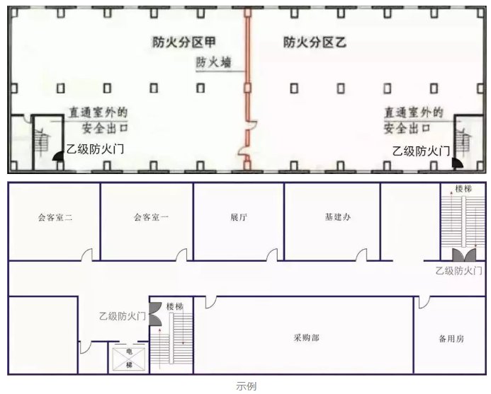 1、在需要開門的防火墻和防火構(gòu)件上設(shè)置甲級防火門